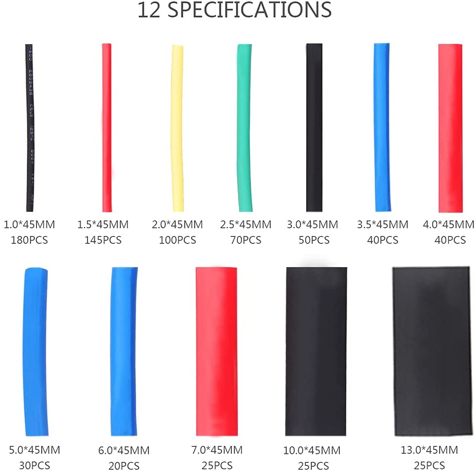 - 750 stuks krimpbare mantelbuizen in verschillende kleuren en maten. Levering in praktische opbergdoos.